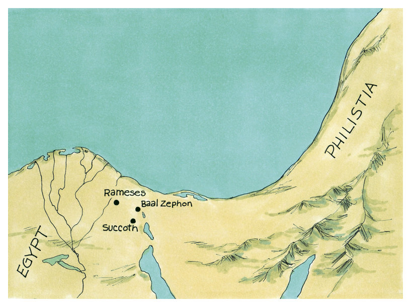 * 10:19: “Red Sea” is the translation for the Hebrew “Yam Suf”, which could be more literally translated “Sea of Reeds” or “Sea of Cattails”. It refers to the body of water currently known as the Red Sea, or possibly to one of the bodies of water connected to it or near it.