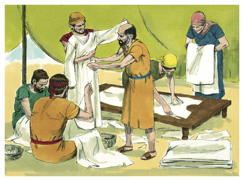 35:10 “‘Let every wise-hearted man amongst you come, and make all that the LORD has commanded: 35:11 the tabernacle, its outer covering, its roof, its clasps, its boards, its bars, its pillars, and its sockets; 35:12 the ark, and its poles, the mercy seat, the veil of the screen; 35:13 the table with its poles and all its vessels, and the show bread; 35:14 the lamp stand also for the light, with its vessels, its lamps, and the oil for the light; 35:15 and the altar of incense with its poles, the anointing oil, the sweet incense, the screen for the door, at the door of the tabernacle; 35:16 the altar of burnt offering, with its grating of bronze, its poles, and all its vessels, the basin and its base; 35:17 the hangings of the court, its pillars, their sockets, and the screen for the gate of the court; 35:18 the pins of the tabernacle, the pins of the court, and their cords; 35:19 the finely worked garments for ministering in the holy place—the holy garments for Aaron the priest, and the garments of his sons—to minister in the priest’s office.’”