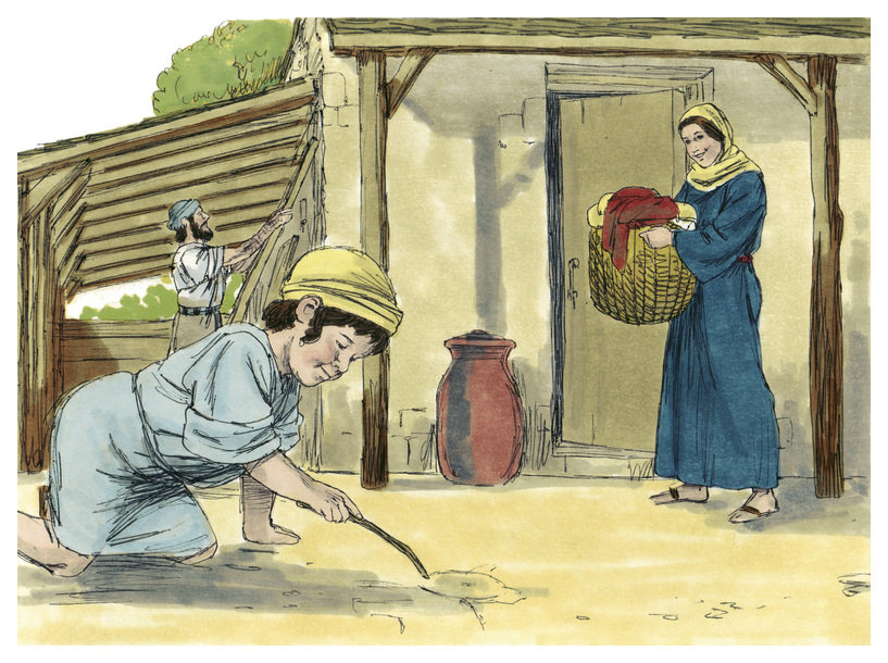 02:06 While they were there, the day had come for her to give birth. 02:07 She gave birth to her firstborn son. She wrapped him in bands of cloth and laid him in a feeding trough, because there was no room for them in the inn.